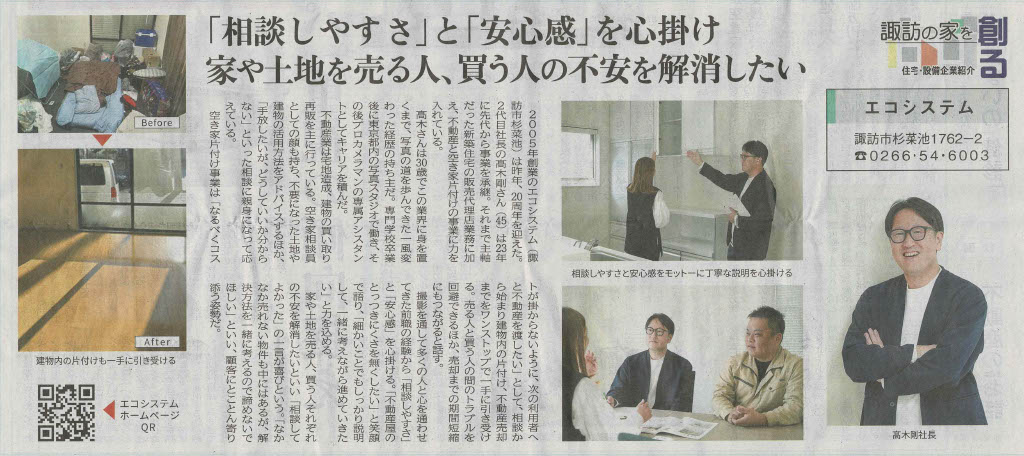 2026年1月16日付の長野日報様の住まいパーク記事にて、弊社の取材記事が掲載されました。